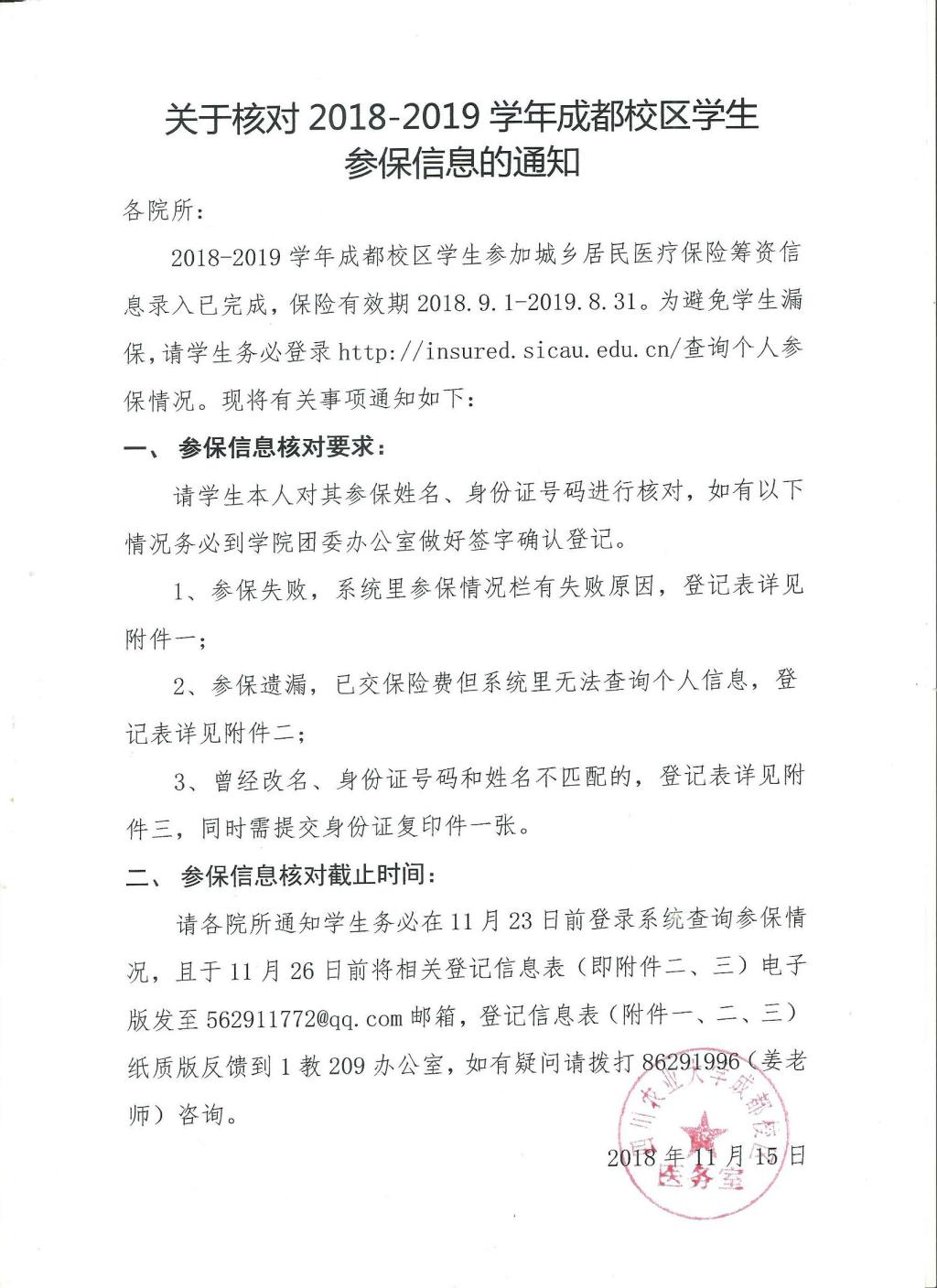 leyu乐鱼·官方web站登录入口核对2018-2019学年成都校区学生参保信息的通知