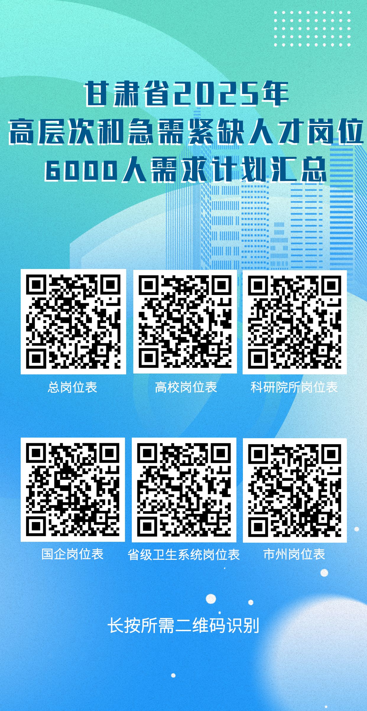 甘肃省2025年秋季“组团式”赴外引才活动需求计划表二维码(动态调整)
